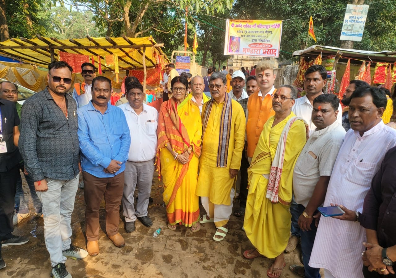 बिलासपुर/नवरात्रि के पावन अवसर पर प्रदेश के वरिष्टम नेता वर्तमान में नेता प्रतिपक्ष डॉ चरण दास महंत ,कोरबा लोकसभा की सांसद श्रीमती ज्योत्सना चरणदास महंत उनके सुपुत्र श्री सूरज महंत सपरिवार रतनपुर महामाया दर्शन हेतु पहुंचे, इस अवसर पर बिलासपुर जिले के लोकप्रिय वरिष्ठ कांग्रेस नेता श्री त्रिलोक चंद्र श्रीवास, राष्ट्रीय समन्वयक -अखिल भारतीय कांग्रेस कमेटी, पि.व. प्रभारी -उत्तर प्रदेश तथा गुजरात अपने सैकड़ो सहयोगियों सहित उपस्थित होकर महंत परिवार का आत्मीय अभिनंदन किया ,महामाया दर्शन पश्चात महंत दंपति चैतुरगढ़ पाली माता रानी के दर्शन हेतु गए इस अवसर पर भी त्रिलोक श्रीवास अपने दर्जनों सहयोगी सहित उपस्थित रहे, एवं प्रदेश के खुशहाली हेतु कामना किया, इस अवसर पर श्री त्रिलोक चंद्र श्रीवास के साथ श्री मनोज श्रीवास्, श्री मोहन जायसवाल श्री जितेंद्र शर्मा जीतू श्री चरण सिंह राज कौशल श्रीवास्तव मयंक वर्मा पार्थ कुमार ओम प्रकाश शर्मा मंगल वाजपेई राहुल गोरख कृष्ण श्रीवास रमेश शिकारी शुभम श्रीवास अनिल कश्यप राजेंद्र श्रीवास गोविंद यादव मनोज यादव दादू शिकारी दादू लश्कर हृदेश कश्यप सोनू साहू प्रशांत पटेल सोनू कश्यप विजेंद्र साहू आयुष सिंह राज प्रकाश कमल सेन मोहसिन खान मणि वर्मा कामता वर्मा मनोज साहू राम लखन जायसवाल सूरज कश्यप सचिन साहू हरीश वर्मा चंद्रप्रकाश केसरवानी छोटे वर्मा सुरेंद्र सिंह सैनी मुकेश अग्रवाल मुकेश बंजारे नवीन दुबे मनीष भट्ट भानु शर्मा आदि जन उपस्थित थेll