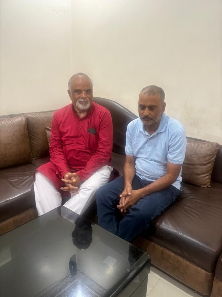 बिलासपुर। पूर्व मंत्री व नगर विधायक अमर अग्रवाल नईदुनिया के संपादक डा सुनील गुप्ता के तेलीपारा स्थित निवास पहुंचे व संवेदना जताई। बता दें कि 29 अगस्त को डा गुप्ता की माता स्व श्रीमती शकुतला गुप्ता का निधन हो गया। उनकी अंत्येष्टि व अन्य कार्यक्रम गृहनगर करंजिया जिला डिंडौरी मध्यप्रदेश में सम्पन्न हुआ। अंत्येष्टि के दौरान शहर से बड़ी संख्या में भाजपा व कांग्रेस के नेताओं व पदाधिकारियों के अलावा डा गुप्ता से जुड़े लोग शामिल हुए। व्यस्तता के चलते पूर्व मंत्री अमर अग्रवाल कार्यक्रमों में शामिल नहीं हो पाए थे